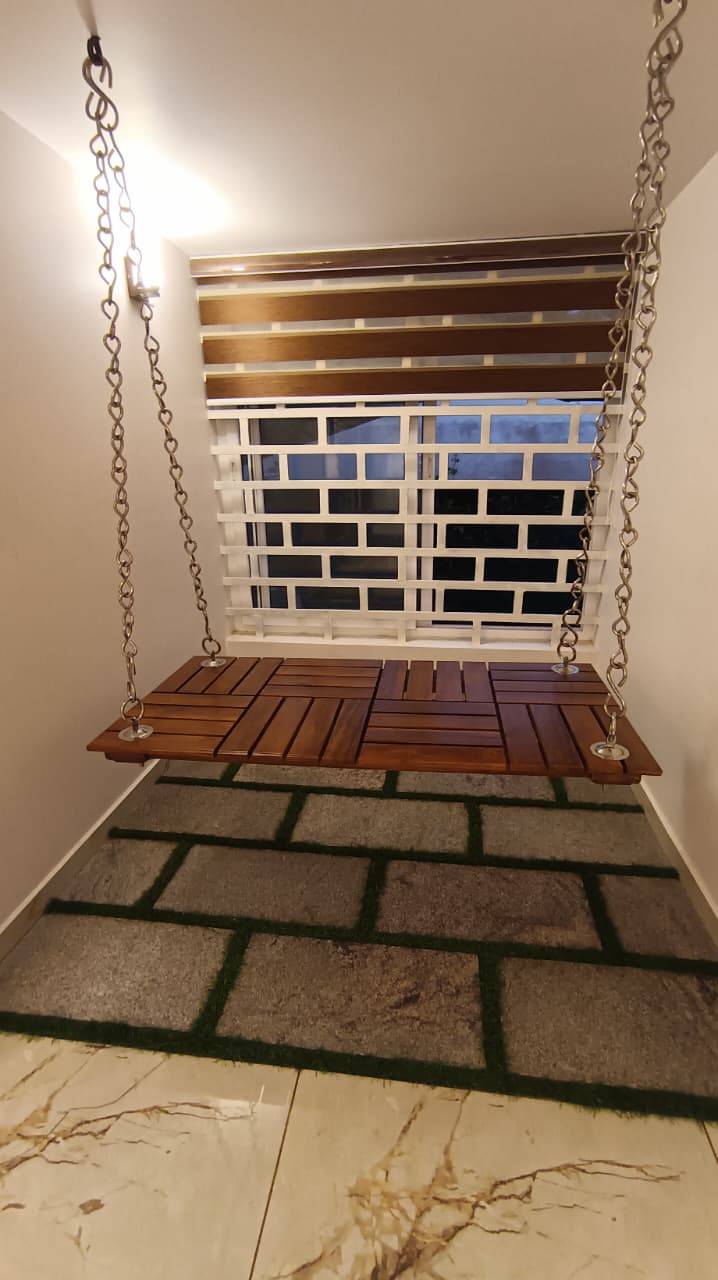 Ours is a duplex property, 2 rooms on 1st floor with balcony and 2 on the ground. Both upstairs 2bh and downstairs 2bhk has living rooms with sofa seating and are separately available on AirBbnb for guests.